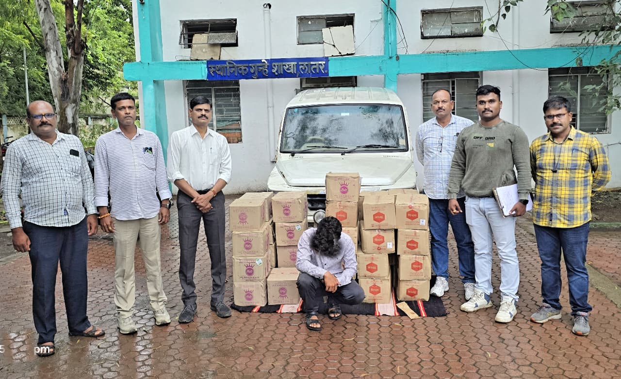 लातूर :- या बाबत थोडक्यात हकीकत अशी की, पोलीस अधीक्षक श्री. अमोल तांबे यांनी जिल्ह्यातील अवैध धंद्याचे समूळ उच्चाटन करण्याकरिता जिल्ह्यातील पोलीस अधिकाऱ्यांना मार्गदर्शन करून सूचना दिल्या होत्या. त्या अनुषंगाने पोलीस अधीक्षक अमोल तांबे,अपर पोलीस अधीक्षक मंगेश चव्हाण यांचे मार्गदर्शनात स्थानिक गुन्हे शाखेचे पोलीस निरीक्षक सुधाकर बावकर यांच्या नेतृत्वातील पथकाला मिळालेल्या गोपनीय माहितीच्या आधारावर एमआयडीसी पोलीस ठाण्याच्या हद्दीतील टाकळी ते तांदूळवाडी जाणारे रोडवर सापळा लावून देशी दारूची चोरटी विक्री व्यवसाय करण्यासाठी अवैध वाहतूक करीत असलेल्या वाहनाला दारूच्या मुद्देमालासह ताब्यात घेण्यात आले. दारूची अवैध वाहतूक करणाऱ्या इसमा विरुद्ध पोलीस ठाणे एमआयडीसी येथे गुन्हा दाखल करण्यात आला आहे.दिनांक 26/07/2025 रोजी टाकळी ते तांदुळवाडी रोडणे टाटा सुमो कार क्रमांक एम.एच. 23 ए.डी.0527 या वाहनातून देशी दारूची अवैध वाहतूक होणार असल्याची गोपनीय माहिती वरून स्थानिक गुन्हे शाखेच्या पथकाने बेकायेशीररित्या अवैधपणे देशी दारूची वाहतूक करणाऱ्या वाहनाला ताब्यात घेऊन 01 लाख 32 हजार रुपयाची देशी दारू व 05 लाख रुपये किमतीची सुमो कार मिळून आली. देशी दारूची अवैध वाहतूक करीत असताना मिळून आलेला इसम नामे