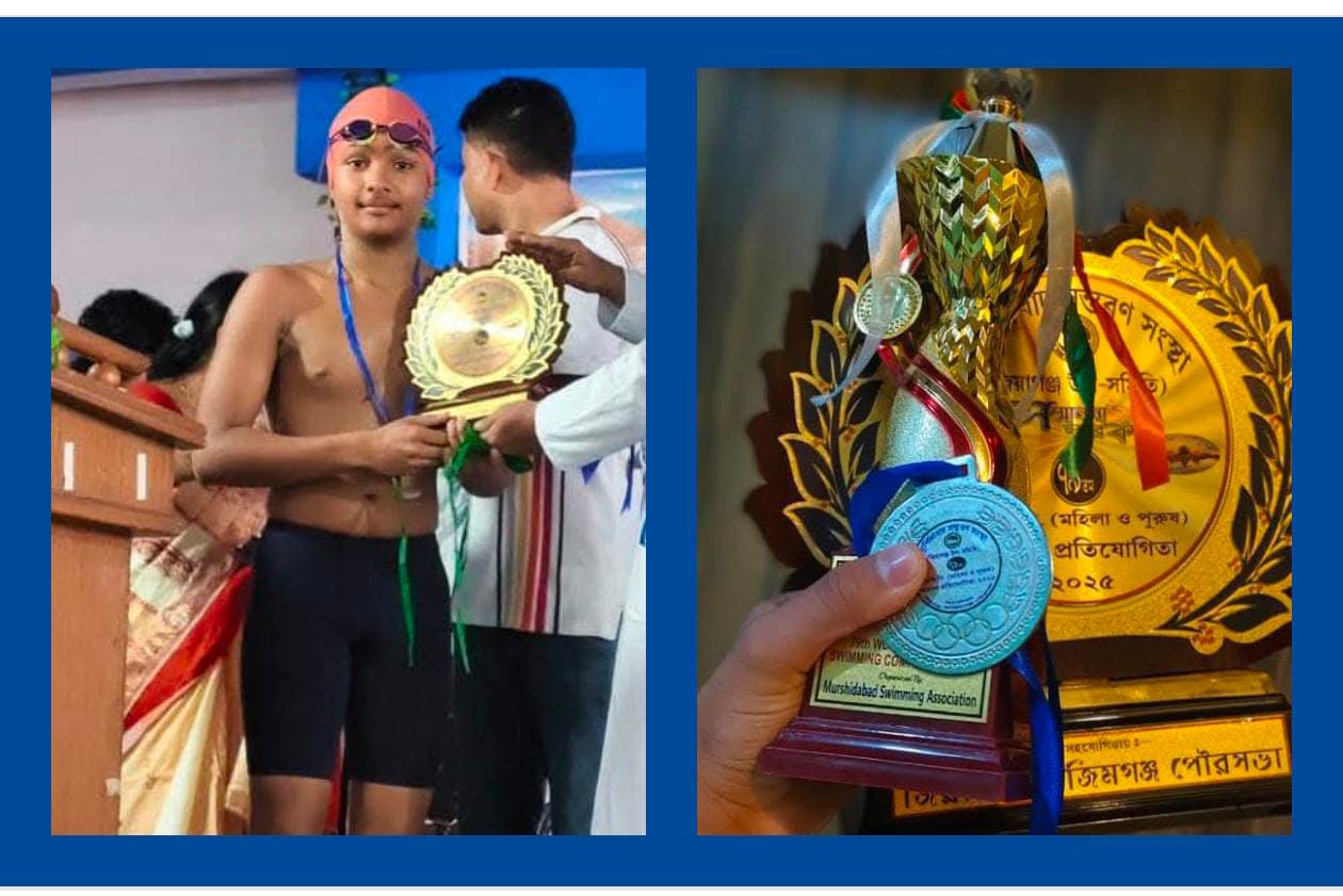 निलंगा : भारतीय जलतरण महासंघातर्फे पश्चिम बंगाल येथील गंगा नदीपात्रात आयोजित १९ किलोमीटर जलतरण स्पर्धेत येथील प्रसिद्ध तथा व्यापारी काँग्रेस पक्षाचे नेते अंबादास जाधव यांचे चिरंजीव हर्षवर्धन जाधवने २ तास ३५ मिनिटात १९ किलोमीटर अंतर पोहत पार करत तिसरा क्रमांक पटकावित सिल्वर मेडल प्राप्त करून देशात महाराष्ट्राची मान उंचावली आहे.
