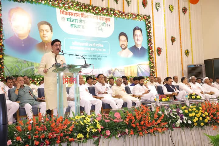 लातूर -लोकनेते विलासराव देशमुख साहेब यांची दूरदृष्टी किती मोठी होती याचा अंदाज लोकांची झालेली प्रगती प्रत्यक्षात डोळ्यासमोर दिसत असलेला विकास हे आज आपल्या जिल्ह्यात मांजरा परिवाराच्या माध्यमातून दिसून येत असून शेतकऱ्यांना आर्थिक दृष्ट्या सक्षम करण्यासाठी मांजरा साखर परिवार आपल्या पाठीशी खंबीरपणे उभा राहणार असून आगामी गाळप हंगामात मांजरा साखर कारखाना ३१५० रुपयापेक्षा अधिक उच्चांकी भाव देणार असल्याचे माजी मंत्री दिलीपराव देशमुख यांनी यावेळी जाहीर केले ते गुरूवारी आयोजीत करण्यात आलेल्या विकास रत्न विलासराव देशमुख मांजरा सहकारी साखर कारखान्याच्या 41 व्या वार्षिक सर्वसाधारण सभेत ते बोलत होते यावेळी प्रमुख अतिथी म्हणून राज्याचे माजी मंत्री आमदार अमित विलासरावजी देशमुख जिल्हा बँकेचे चेअरमन धीरज विलासरावजी देशमुख माजी आमदार वैजनाथजी शिंदे , राज्य साखर महासंघाचे संचालक आबासाहेब पाटील रेनाचे माजी चेअरमन यशवंतराव पाटील बाजार समितीचे सभापती जगदीश बावणे मांजराचे माजी चेअरमन धनंजय देशमुख रेनाचे चेअरमन अनंतराव देशमुख मारुती महाराज चे चेअरमन श्याम भोसले मांजरा साखर कारखान्याचे व्हाईस चेअरमन अशोक काळे जिल्हा बँकेचे उपाध्यक्ष प्रमोद जाधव बाजार समितीचे सभापती जगदीश बावणे, रेनाचे उपाध्यक्ष प्रवीण पाटील, मारुती महाराजचे उपाध्यक्ष सचिन पाटील ट्वेंटीवन शुगरचे उपाध्यक्ष विजय देशमुख , मारुती महाराज चे माजी चेअरमन गणपतराव बाजुळगे मांजरा साखर चे कार्यकारी संचालक पंडित देसाई आदी मान्यवर उपस्थित होते
