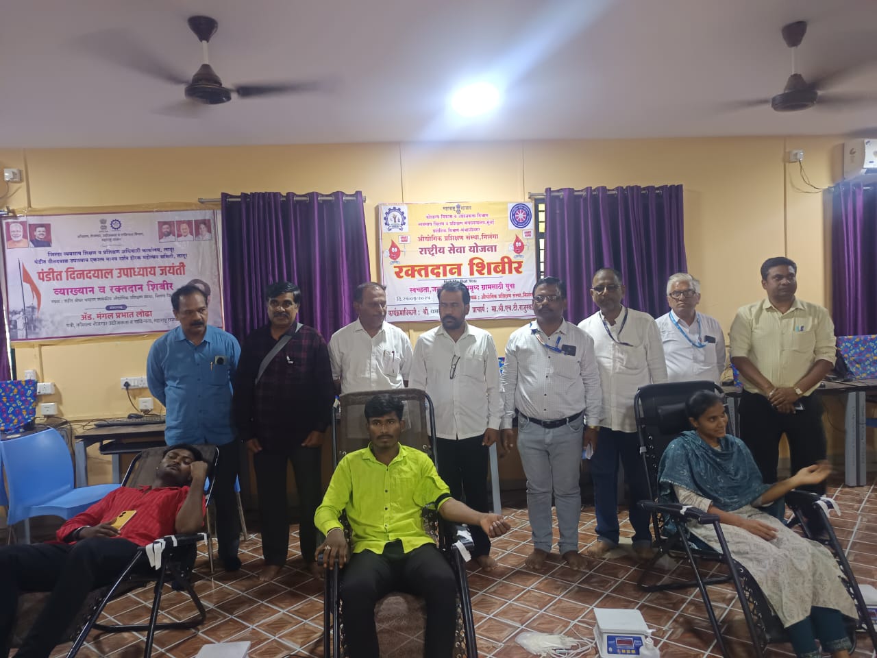 निलंगा :- दिनांक 25 सप्टेंबर 2025 रोजी पंडित दीनदयालजी उपाध्याय यांची जयंती शहीद श्रीधर चव्हाण शासकीय औद्योगिक प्रशिक्षण संस्था निलंगा येथे साजरी करण्यात आली, या प्रसंगी प्रमुख वक्ते मा. श्री. परमेश्वर जी हासबे ( माजी सिनेट सदस्य स्वामी रामानंद तीर्थ मराठवाडा विद्यापीठ नांदेड) पंडित दीनदयाल एकात्मता मानव दर्शन ह्या विषयावर व्याख्यान दिले, तसेच मा.श्री नरसिंग झरे ( सचिव भटक्या विमुक्त विकास परिषद महाराष्ट्र राज्य) व मा. श्री. दत्तात्रेयजी पांढरे ( आय एम सी सदस्य आयटीआय निलंगा )यांनी प्रशिक्षणार्थ्यांना मार्गदर्शन केले, संस्थेचे प्राचार्य मा. श्री. हर्षद राजुरकर साहेब, गटनिदेशक श्री पांचाळ सर,राष्ट्रीय सेवा योजना कार्यक्रम अधिकारी श्री कादरी सर व सर्व कर्मचारी उपस्थित होते, पंडित दीनदयाळजी उपाध्याय यांच्या जयंतीनिमित्त जिल्हा व्यवसाय शिक्षण प्रशिक्षण अधिकारी कार्यालय लातूर व राष्ट्रीय सेवा योजना औद्योगिक प्रशिक्षण संस्था निलंगा यांच्यामार्फत संस्थेत रक्तदान शिबिर पार पडले, संस्थेतील विद्यार्थ्यांना प्रेरणा देण्यासाठी संस्थेचे प्राचार्य श्री. हर्षद राजूरकर साहेब यांनी 61 वी वेळी रक्तदान केले, त्यांच्या प्रेरणेतून श्री. थोरात सर, कुलट सर, दडपे सर, कलाने सर, व प्रशिक्षणार्थ्यांनी रक्तदान केले,