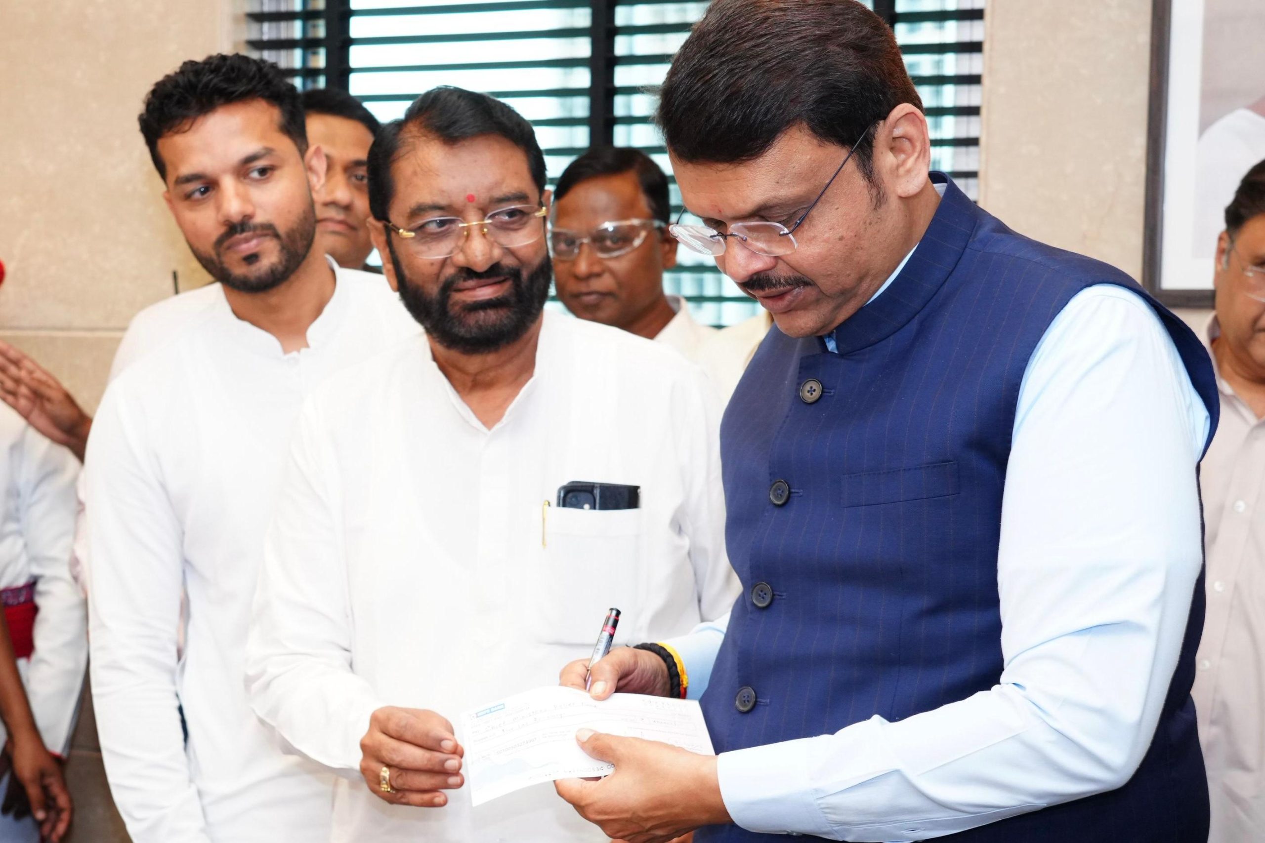 मुख्यमंत्री देवेंद्र फडणवीस यांच्याकडे धनादेश सुपूर्द
